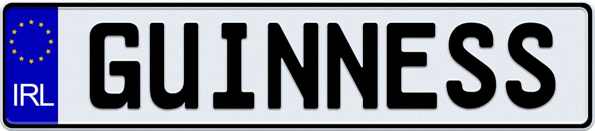 Our Irish License Plate shows the European union flag on the left with IRE below it for Ireland.