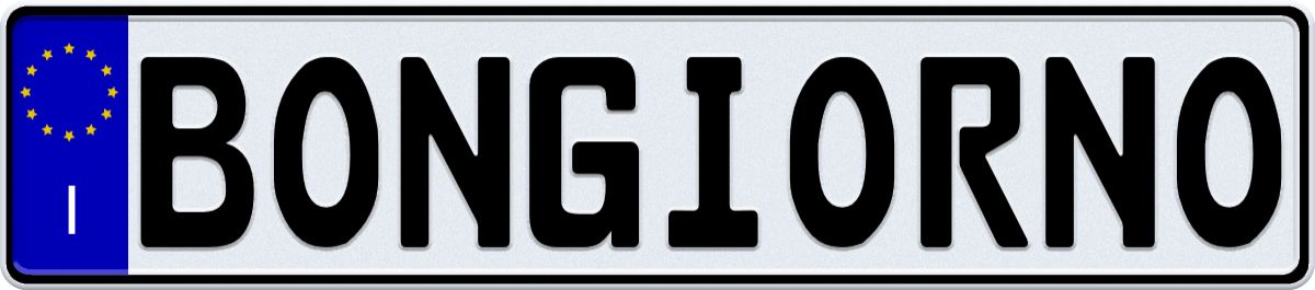 Our Italian License Plate shows the European union flag on the left with an 'I' below it for Italy.